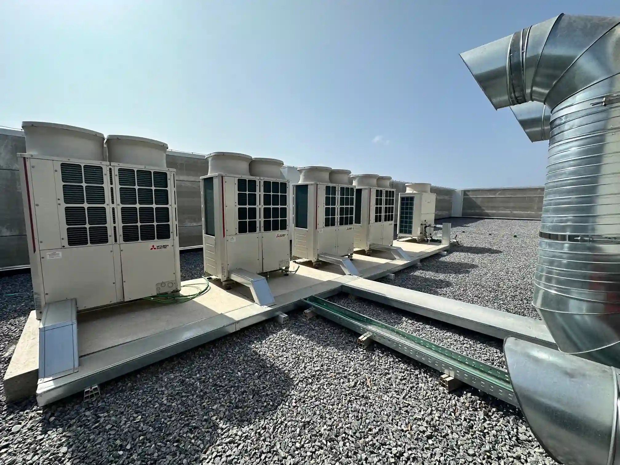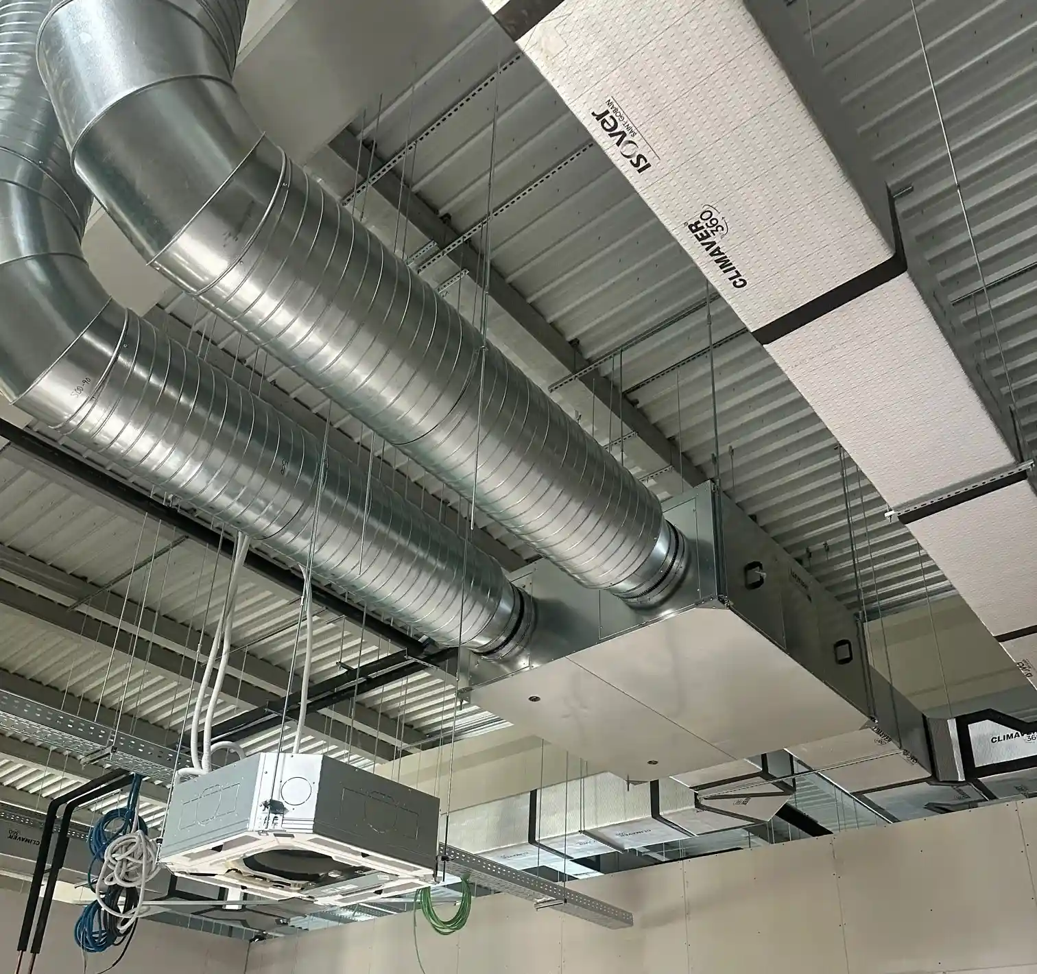 Sistemas de climatización robustos y de alto rendimiento para naves industriales y fábricas, con control eficiente del aire y la temperatura.